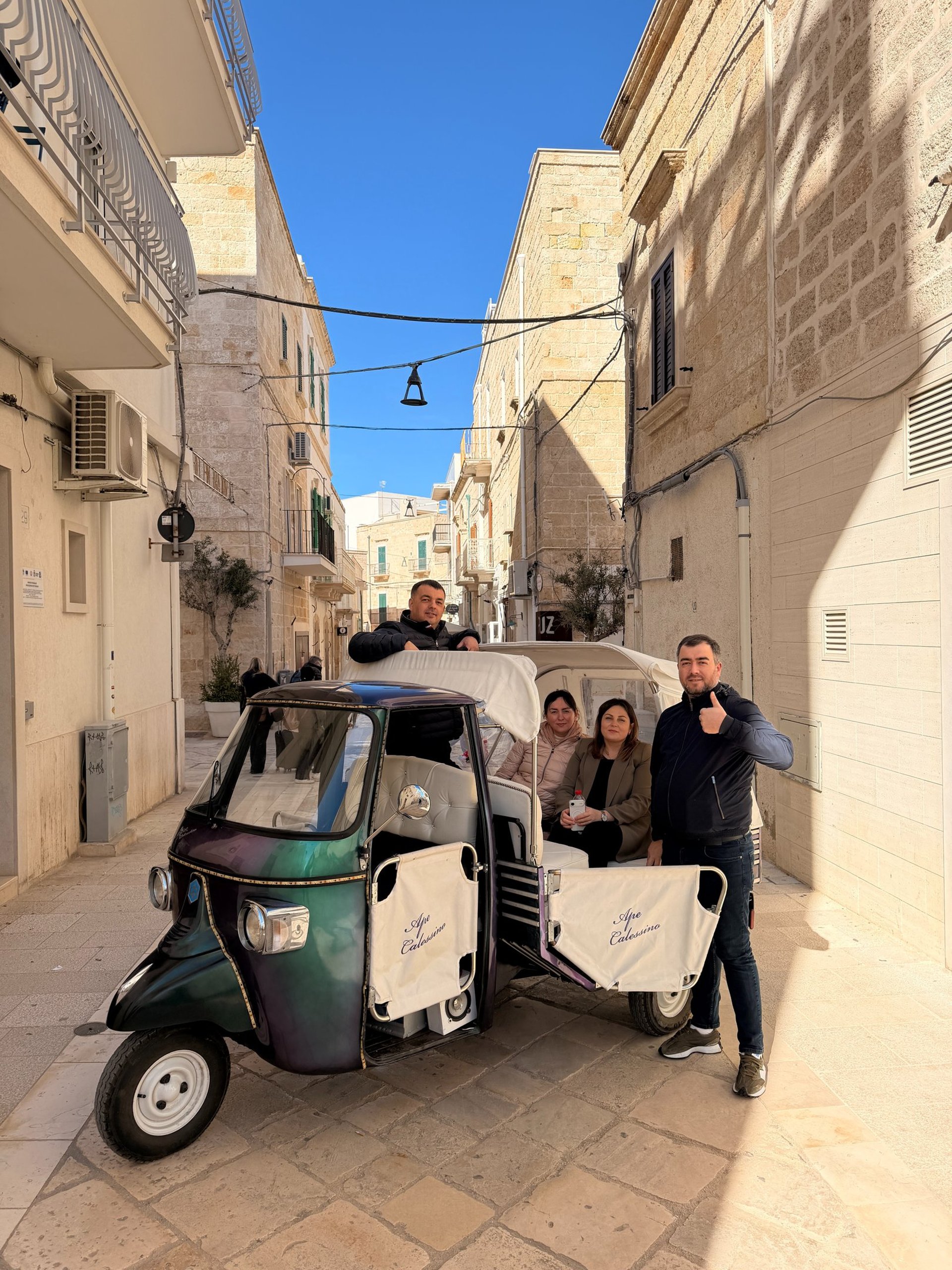 Explore Polignano a Mare by private Ape Calessino (tuk tuk). A comfortable, scenic and customizable tour with a local guide, perfect for couples, families and small groups.